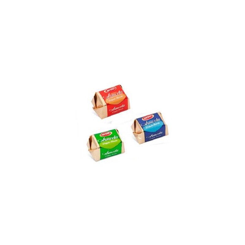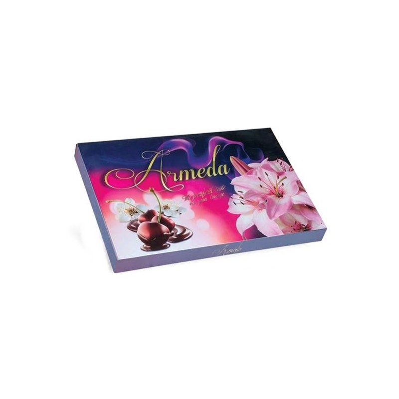 Mléčné pralinky Armeda s mléčnou náplní s chutí oříšků, pomeranče, kokosu, jahod, karamelu a ovoce.