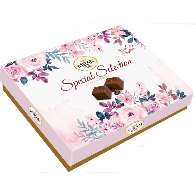 Mléčné pralinky s mléčnou náplní s chutí oříšků, kokosu, karamelu a ovoce.