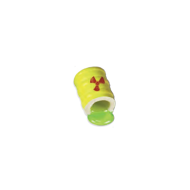 Kyselý zelený "toxický odpad" pečlivě ukrytý ve žlutém barelu s patřičným označením je
