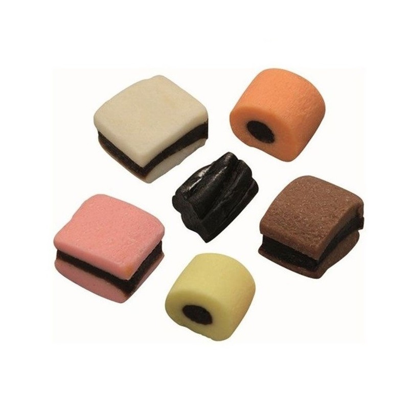 Lahodné kostičky a válečky kombinují chuť pikantní lékořice a sladkou chuť kokosu, kakaa,