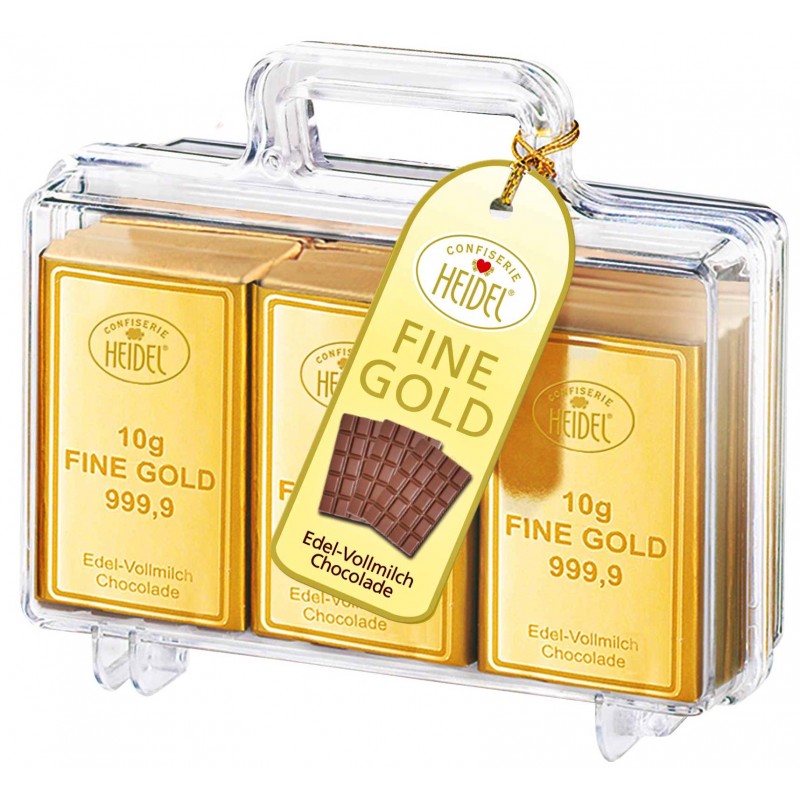 Dárková plastová krabička ve tvaru kufříku (12x10x2,5cm) s jemnou mléčnou čokoládou (12x10ks).