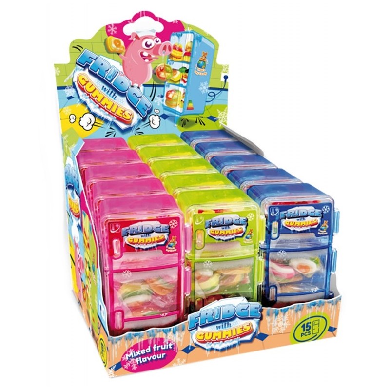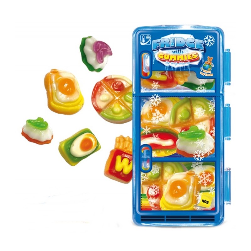Plastový box (výška 11cm) ve tvaru ledničky a ovocné želé.