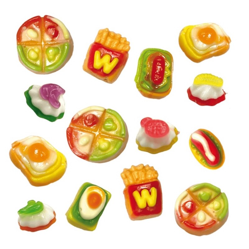 maltózový sirup, cukr, voda, želatina, zahušťovadlo (pektin, agar), kyseliny (kyselina citrónová a jablečná, citrát sodný), leštící látka (karnaubský vosk), zvlhčující látka (sorbitol), příchutě, barviva (E133, E141, E160a, E162).