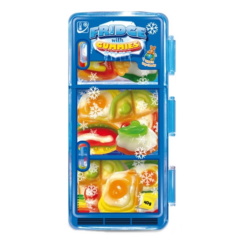 Plastový box (výška 11cm) ve tvaru ledničky a ovocné želé.