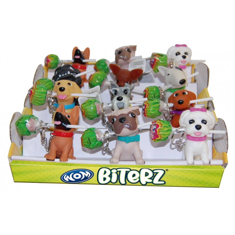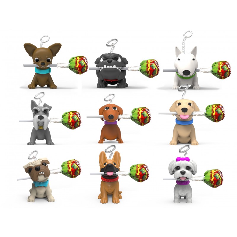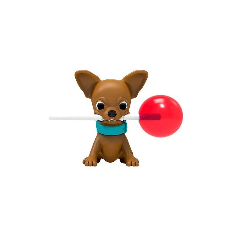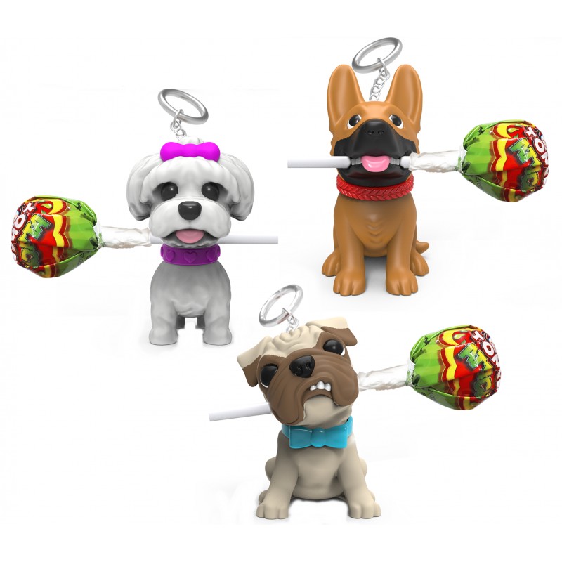 Plastová figurka pejska s kyselým lízátkem s chutí jahod (12g).