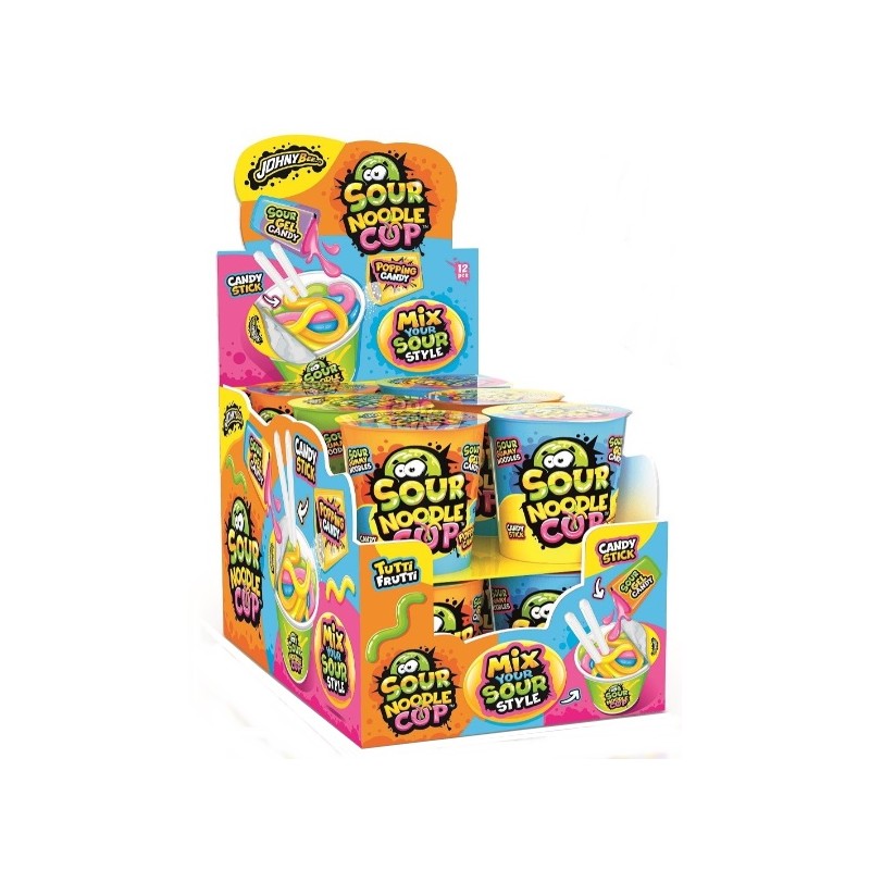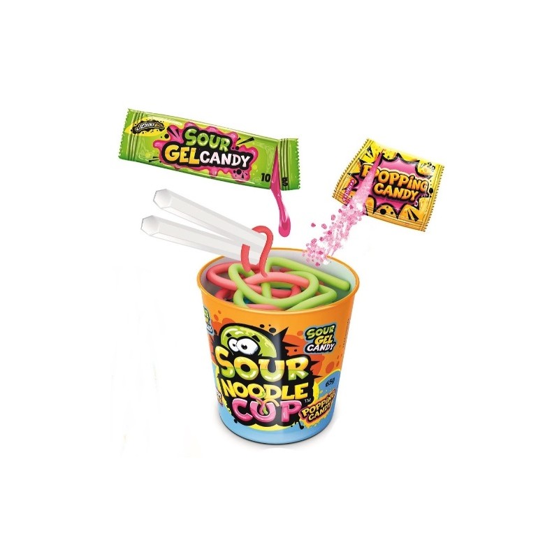 Želé s chutí tutti frutti (35g), ovocný gel (10g), komprimát (8g), praskací prášek (2x1g) v dárkovém balení.