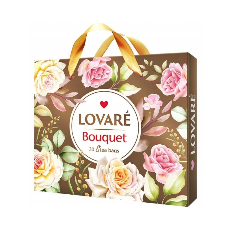Elegantní dárková taštička s květinovým potiskem a jedinečným čajovým výběrem (6x5ks).