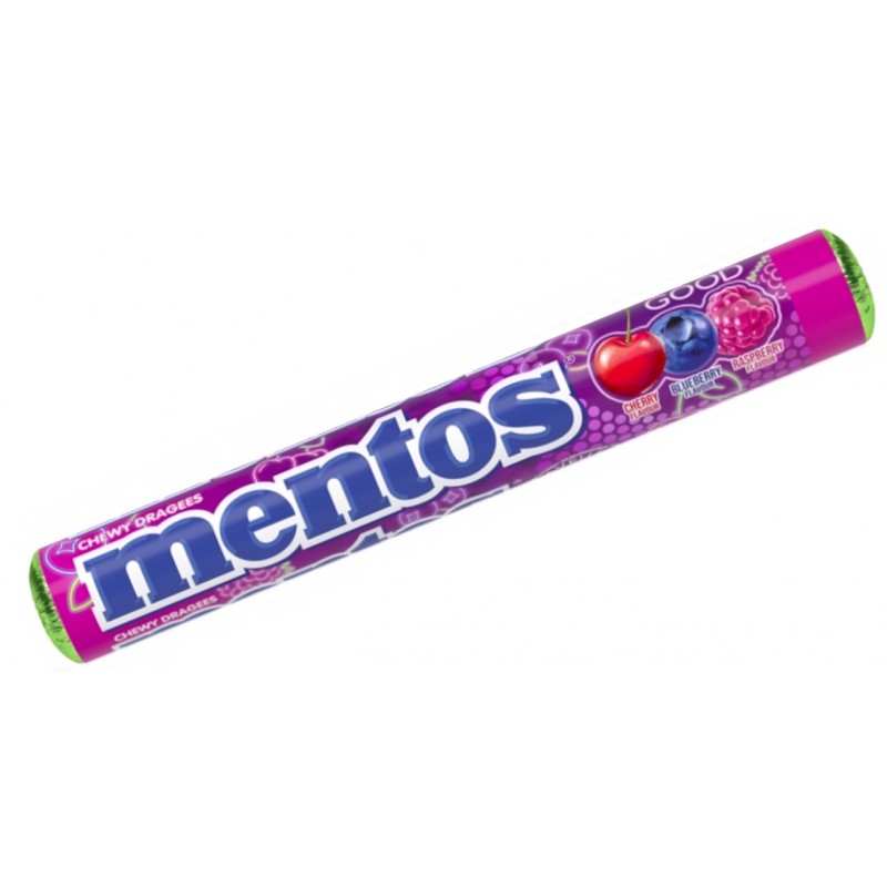 Oblíbené Mentos žvýkací bonbóny v typickém ruličkovém balení.