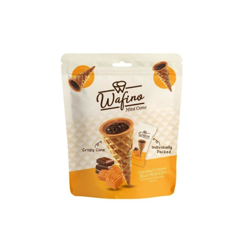 Jednotlivě balené mini oplatkové kornoutky s náplní.