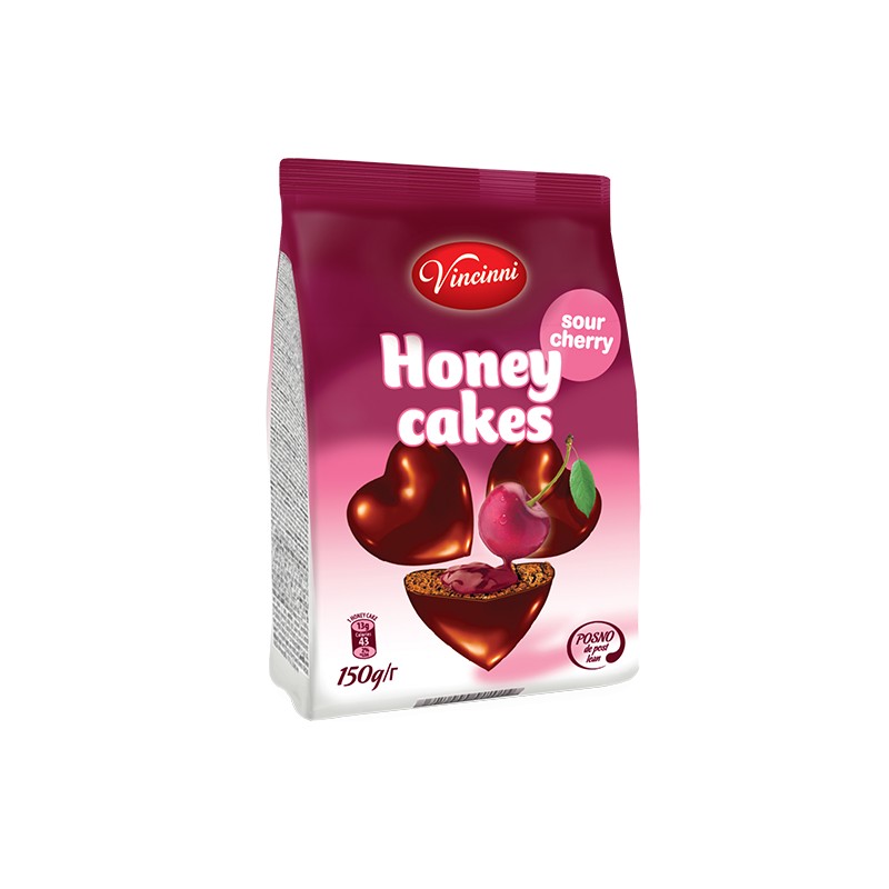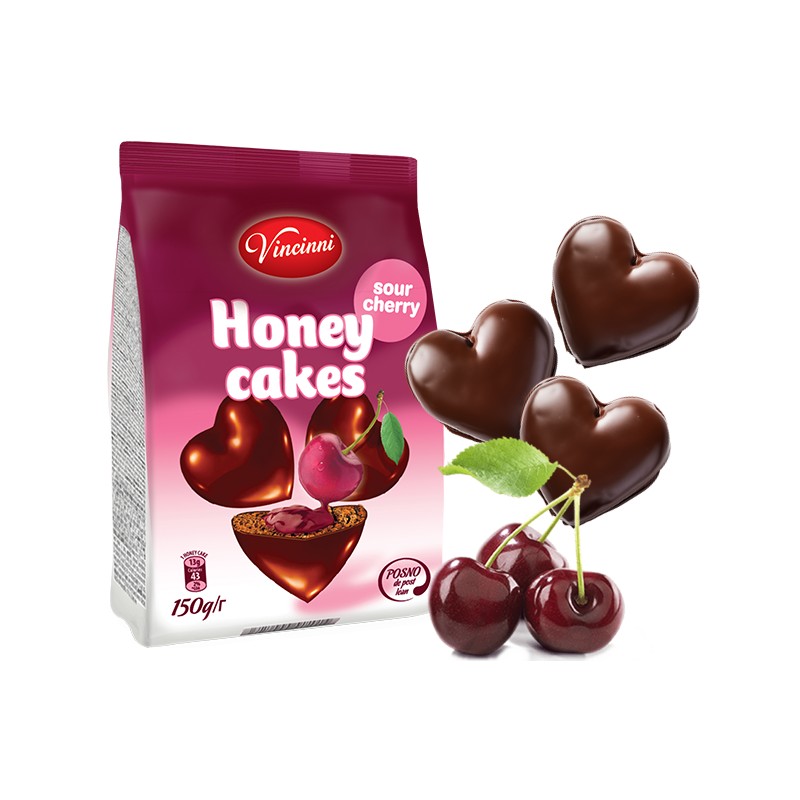 Medové perníčky v kakaové polevě (25%) plněné pikantním třešňovým džemem (20%)