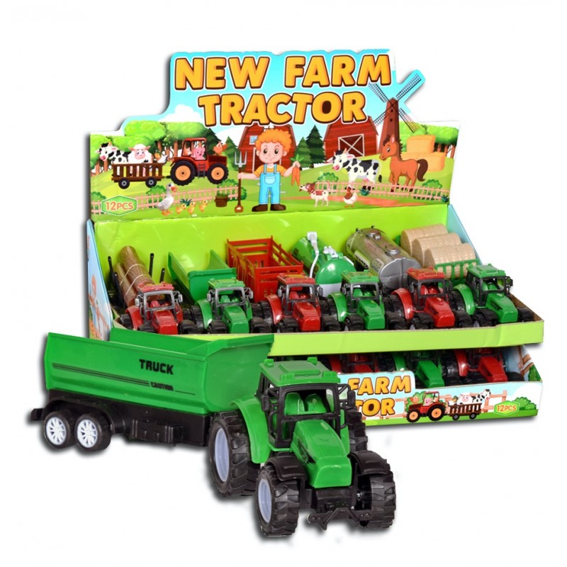 Perfektně provedený plastový model traktoru s různými odnímatelnými přívěsy.