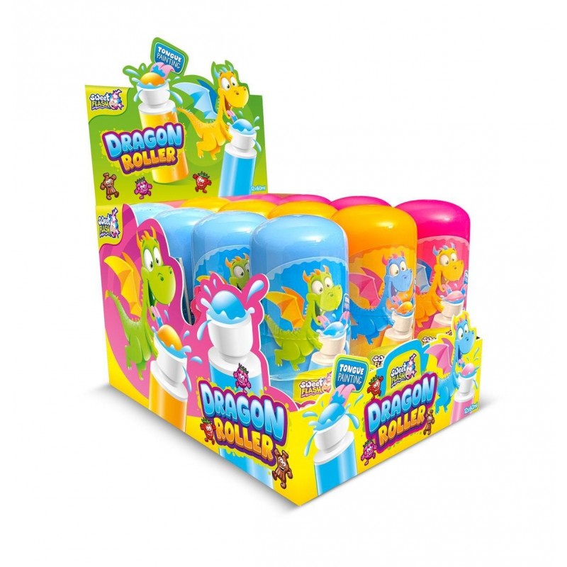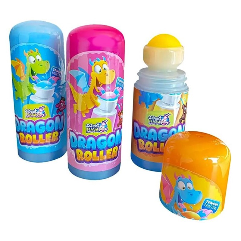 Tekutá kyselá cukrovinka s modrým barvícím efektem s praktickým aplikátorem ve stylu roll on.