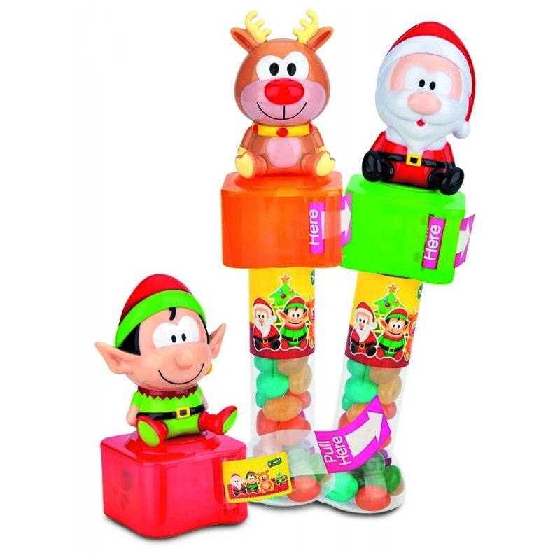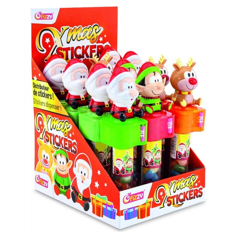 Plastová figurka jako zásobníček samolepek (22ks) a želé fazolky (25g).
