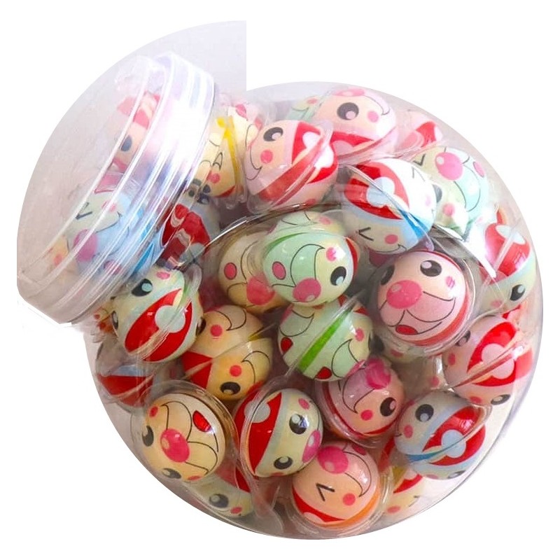 Barevné kulaté žvýkačky s náplní v plastovém obalu s potiskem Santa.