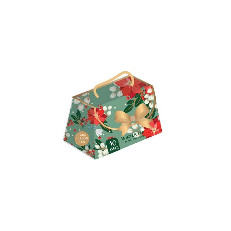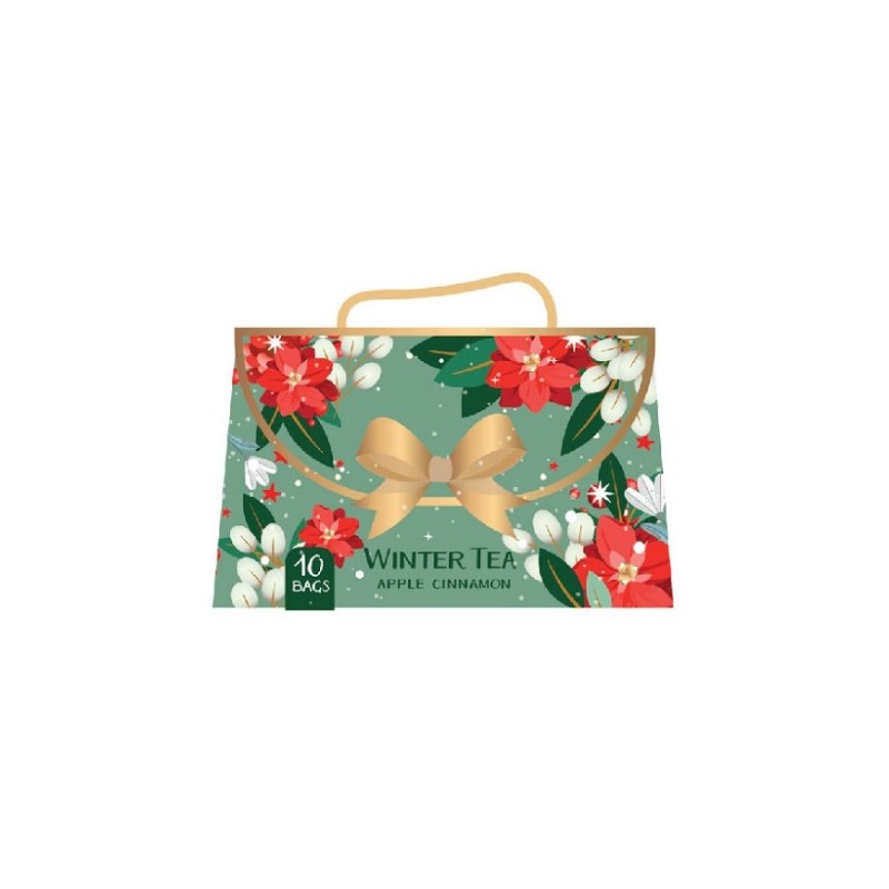 Dárková vánoční taštička s černým čajem s příchutí karamelu a jablek.