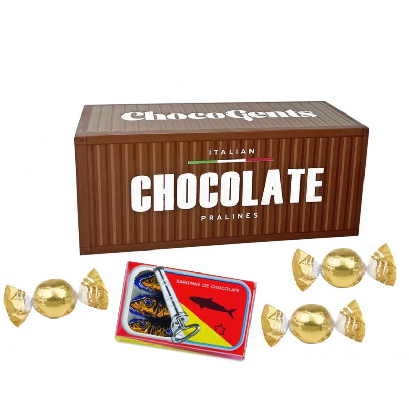 Pro pány. Lodní kontejner plný čokoládového zlata. Originální bonboniéra s pralinkami se smetanovou náplní. Vyrobeno z pevného kartonu.
